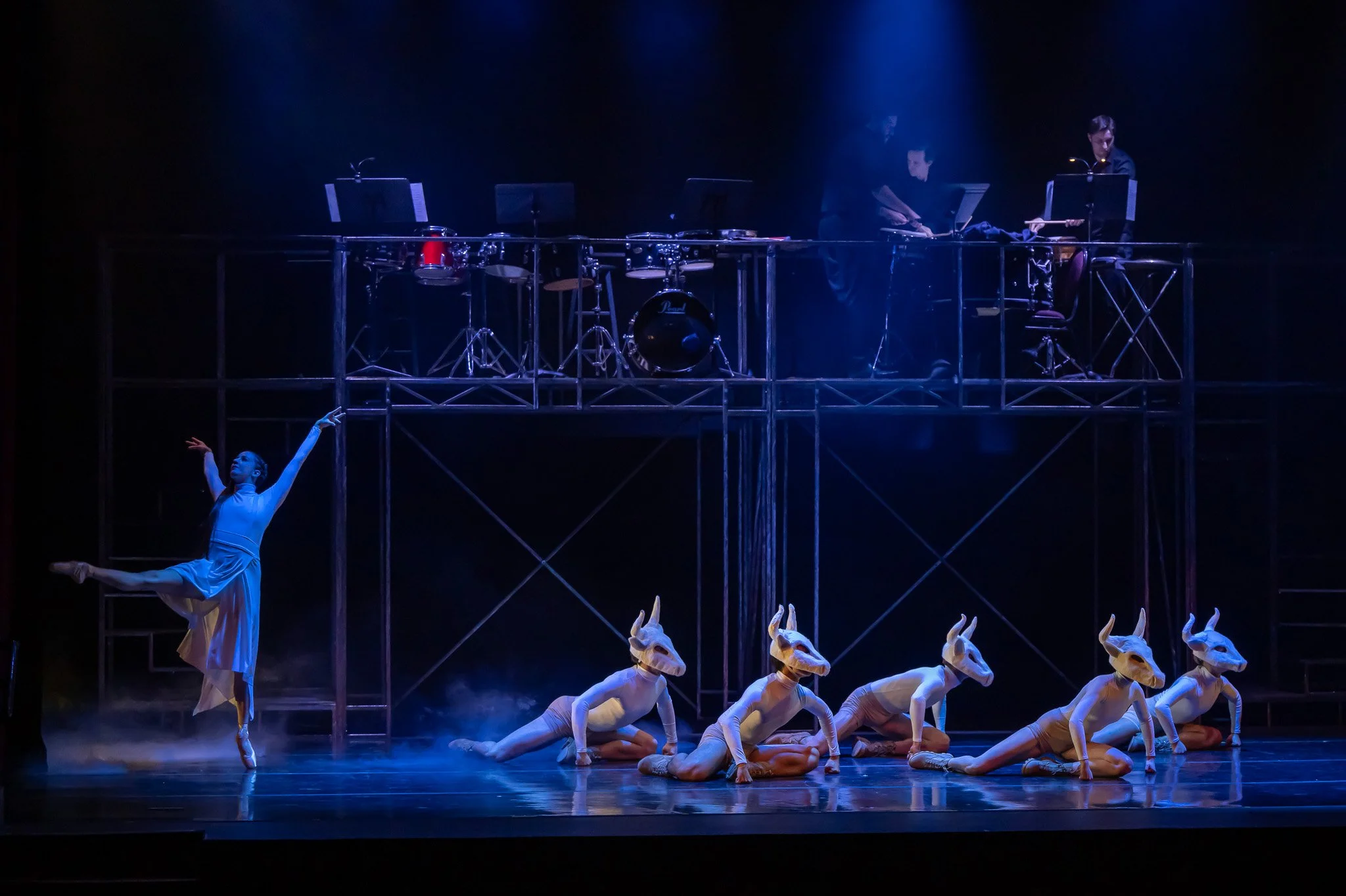 Une production mémorable qui réunit des danseurs et danseuses de grand talent, une mise en scène impressionnante, des décors et un éclairage saisissants, ainsi que trois percussionnistes sur scène.