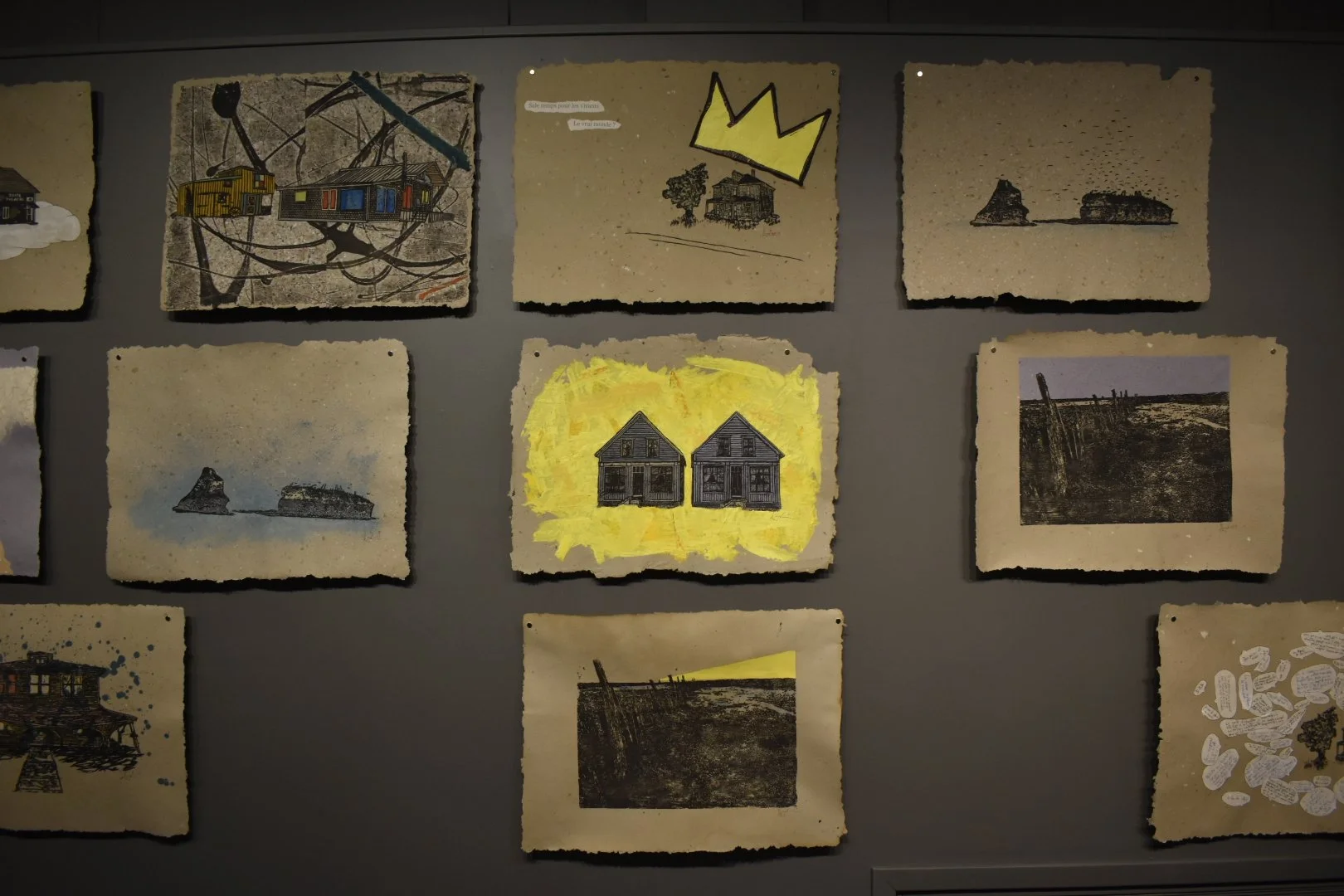 Ces gravures liées à la remémoration et à la réminiscence d'un souvenir singulier diffèrent par leurs couleurs et leurs collages. Elles sont imprimées sur du papier fait main pour soutenir l’idée du vécu. Leur esthétique, chiffon, transmet le vécu par sa singularité et par le processus nécessaire pour le fabriquer et faire vivre son histoire.